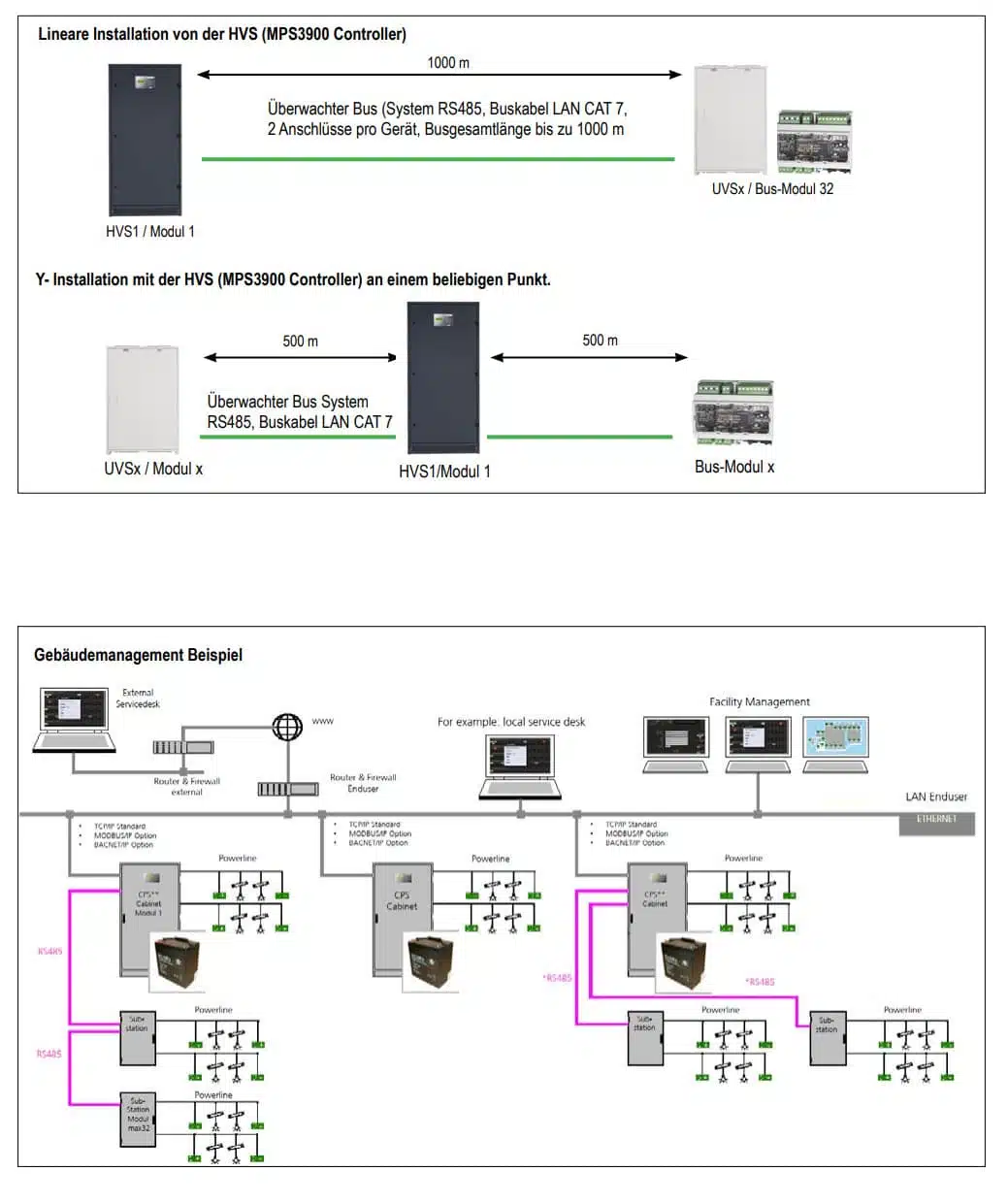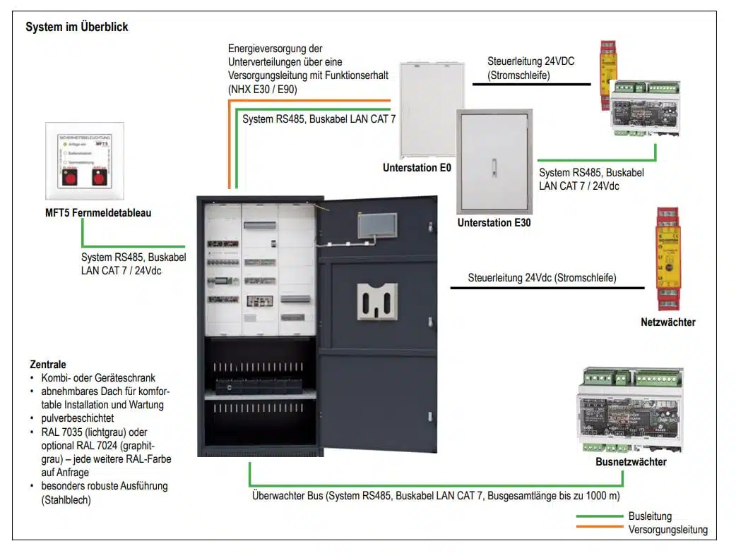 - Endstromkreise: 1 Buslinie mit bis zu 128 Abgängen (Standard)