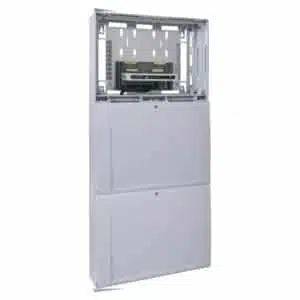 Das Anzeige- und Bedienteil FlexES ist ein modernes Human-Machine-Interface (HMI) mit einem farbfähigen 5,7" TFT-Display. Es bietet intuitive Bedienung durch eine kapazitive Tastatur und ein interaktives Tastaturmenü. Das Gerät ist sowohl für den Einbau in den Frontrahmen des Brandmelde-Computers als auch als abgesetztes Bedienteil geeignet. Alternative für Einbauschrank 7 HE: Anzeige- und Bedienteil für Einbauschrank 7 HE (Artikelnummer: FX808324.19)