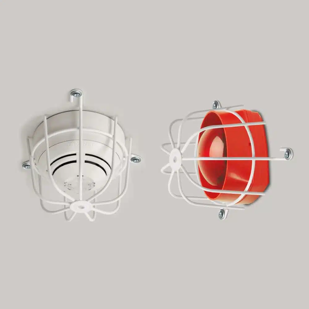 Melderschutzgitter zur Sicherung der Brandmelder der Familie IQ8Quad und der Melderserie 9x00 gegen unbefugtes Entnehmen sowie als mechanischer Schutz gegen Beschädigung.