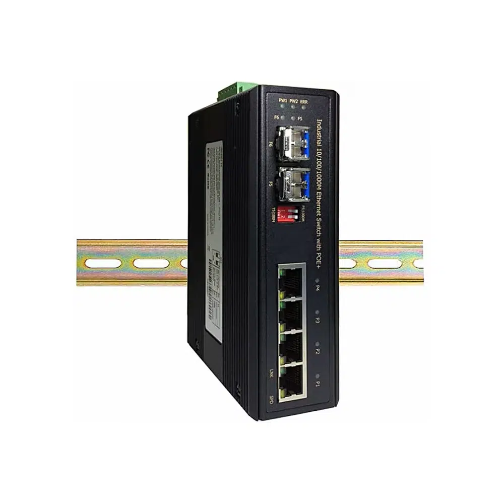 583396PoE Switch VARIODYN D1PoE Switch zur Anbindung der EthernetTouch Sprechstelle ETCS (583527) an dasVARIODYN D1, inclusive derEnergieversorgung der ETCS über PoE.Der PoE Switch kann für einfache oderredundante Topologien eingesetzt werden.Großer Eingangsspannungsbereich:12V/24V/48VDC (12V … 56V DC), PoE switchgemäß IEEE802.3. 4 Port Gigabit POEInjector, 4x10/100/1000M TX PSE(802.3af/at POE+), 2x100/1000M SFP gemäßIndustriestandard. Regelung der internenSpannung von 12/24/48V DC auf 55 VDC,Der PoE Switch ist mit Cold DesignTechnology ausgestattet um auch mit sehrgeringer Eingangsspannung dieAusgangsspannung von 55V DC bei einemsehr guten Wirkungsgrad und extremgeringer Wärmeabgabe, sicher zuerreichen. Für die Anzeigen deraktuellen Zustände und für Einstellungenstehen LED Anzeigenund DIP Schalter am Gerät zur Verfügung.Leistungsmerkmale:IEEE Standard:IEEE 802.3 10Base---T EthernetIEEE 802.3u 100Base---TX Fast EthernetIEEE 802.3ab 1000Base---T GigabitEthernetIEEE 802.3z 1000Base---X GigabitEthernetIEEE802.3x Flow Control and BackPressure,IEEE802.3af für POEIEEE802.3at für POE+Alarm-Relais-Kontakt:Relaisausgang mit einerStrombelastbarkeit von 1 A bei 24VDC,POE-LeistungPOE-Leistung pro Port 30Watt. Maximal 36Watt pro Anschluss bei12/24/48VDC-EingangMaximale Gesamtleistung 126Watt bei24VDC und 48VDC.Maximale Gesamtleistung 65W bei 12VDC.Installation:Installationsmontage: DIN-Schienenmontage und WandmontageTechnische Daten:Nennspannung: 12V ... 56V DC (redundante Anschlüsse)Leistungsaufnahme: max. 5,76W bei 12/24/48 V DC, ohne POEUmgebungstemperatur: - 40? … 75?Lagertemperatur: - 40? … 85?Rel. Luftfeuchte: 5% bis 95% (ohne Betauung)Gehäuse: Metall Schutzart: IP30Abmessungen (L x B x T): 142 mm x 43 mm x 105 mmFabrikat: HoneywellTyp: PoE Switch VARIODYN D1Artikel: 583396Alternativ: