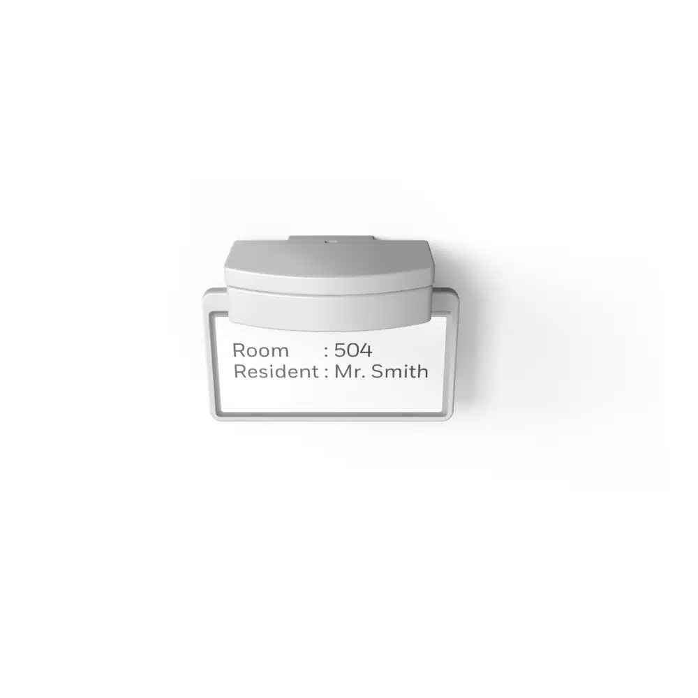 Anschluss der Einheit über ein Flachbandkabel an das SEM oder die SCL. Das Namensschild ist mit einer integrierten Beleuchtung (weiß) ausgestattet, die für eine klare Sichtbarkeit sorgt.