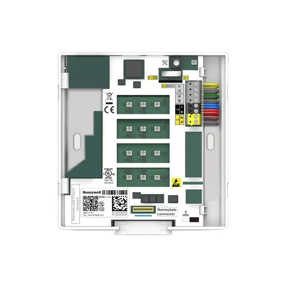 Anschluss an die multifunktionalen Zimmereinheiten über den Datenbus (DBUS) oder im Kompatibilitätsmodus an die Steuerausgänge AL1/2, RL, RLWC. Nutzung einer benutzerfreundlichen Installationstechnik mit farbkodierten Anschlussterminals für eine effiziente Verkabelung und eine optimierte Inbetriebnahme.